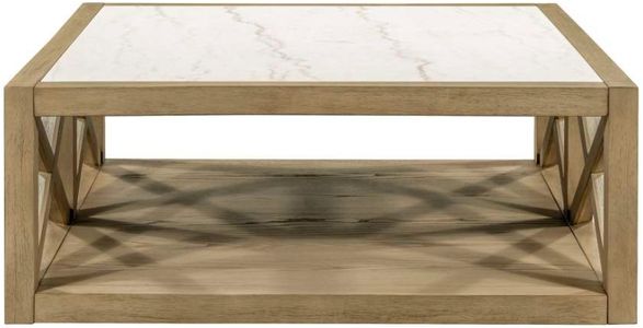 The inset white Carrara marble veneer top adds an elevated touch, bringing both style and luxury to your living space. The open design with bold X-shaped end panels creates a visually dynamic look, while its clean lines ensure versatility in any room. Equipped with casters for easy mobility, this coffee table blends style, function, and sophistication seamlessly.