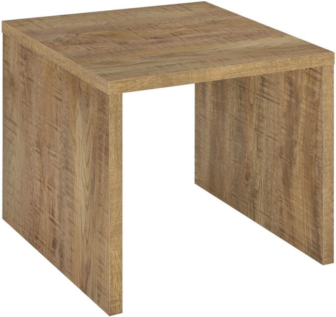 Matching end table provides open sides and sturdy surface for lighting or décor