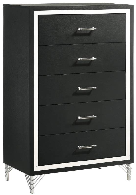 Chic touches bring glamour and elegant flair to a modern five-drawer chest