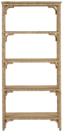 With the earthy feel of rattan and wicker, the Olisa etagere is covered in braided Abaca rope to bring a natural elegance to a room. The dexterity required to wrap a piece of furniture so skillfully makes this tan etagere special.Read More