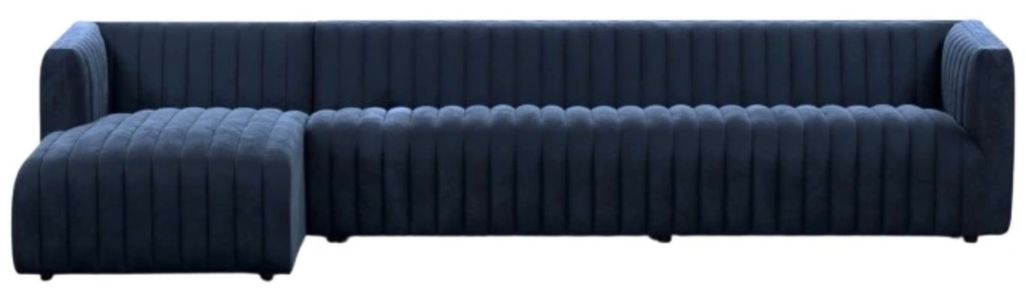The Four Hands Augustine 2-Piece Sapphire Navy Upholstered Sectional offers a luxurious blend of comfort and style. With its spacious 126-inch design and plush upholstery, it invites relaxation while adding a touch to your living space. Perfect for entertaining or cozy family nights.Read More