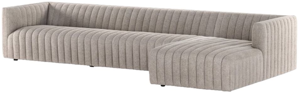 The Four Hands Augustine 2-Piece Sectional has a dramatically channeled sofa with textural grey upholstery offers a crisp, clean look inspired by modern menswear. Two-piece sectional with right arm-facing chaise, sized for larger spaces.Read More