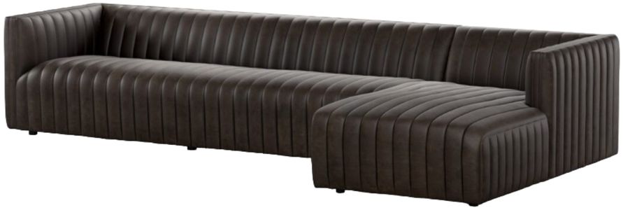 A dramatically channeled sofa wrapped in a dark top-grain leather creates a mature, clean look inspired by modern menswear. Two-piece sectional with right arm-facing chaise, perfectly sized for smaller spaces.Read More