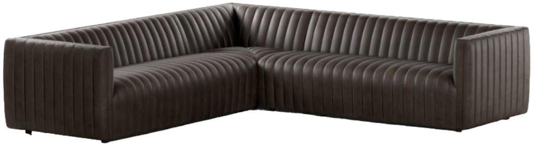 This Four Hands Augustine 3-Piece 105" Sectional has a dramatically channeled sofa wrapped in dark top grain leather creates a mature, clean look inspired by modern menswear. This three-piece sectional is perfectly sized for smaller spaces.Read More