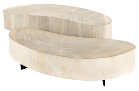 Natural beauty - total novelty. Oyster-cut Guanacaste forms kidney-shaped coffee tables in varied heights, creating a beautifully layered look. Visible veneer rings speak to woods' natural graining, while a dark gunmetal-finished base provides clean contrast to the whole look.Read More