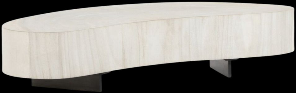 Natural beauty - total novelty. Bleached oyster-cut Guanacaste forms a petite, kidney-shaped coffee table. Visible rings speak to woods' natural graining, while a dark gunmetal-finished base provides clean contrast to the whole. Option to pair with taller piece; sold separately.Read More