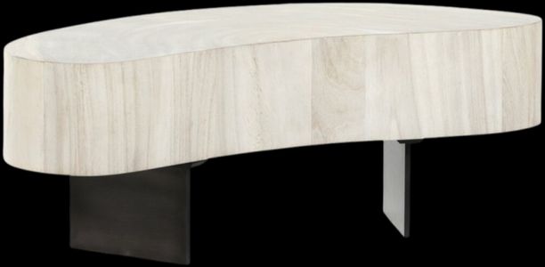 Natural beauty - total novelty. A thick slab of bleached, oyster-cut Guanacaste forms a tall, kidney-shaped coffee table. Visible rings speak to woods' natural graining, while a dark gunmetal-finished base provides clean contrast to the whole look.Read More