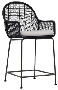 Clean, contemporary shaping and an updated weave transform all-weather wicker into something modern. This high-texture bar stool is supported by a contrasting black iron base, with a white seat cushion for comfort. Cover or store indoors during inclement weather and when not in use.Read More