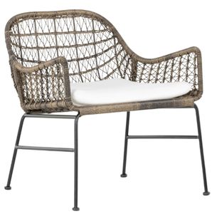 Clean, contemporary shaping and an updated weave transform all-weather wicker into something modern. This outdoor-friendly take on the classic club chair is supported by an airy bronzed iron base, with a white seat cushion for added comfort. Cover or store indoors during inclement weather and when not in use.Read More
