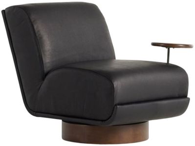 A stylish play on function. With chunky, amber-colored upholstery, armless accent seating tops a rounded parawood swivel base, wire-brushed for subtle vintage vibes. An accompanying side table of gunmetal-finished iron and wire-brushed parawood presents the perfect place to keep a drink or book on-hand.Read More