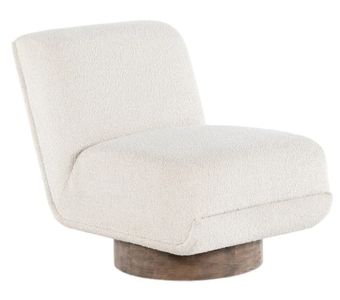 A stylish play on function. With chunky, cream-colored upholstery, armless accent seating tops a parawood 360-degree swivel base, wire-brushed for vintage vibes. Option to pair with matching side table, which can be fastened or removed from either side with ease.Read More