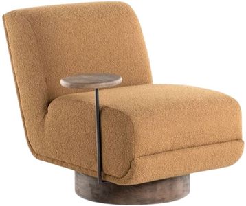 A stylish play on function. With chunky, amber-colored upholstery, armless accent seating tops a parawood 360-degree swivel base, wire-brushed for vintage vibes. An accompanying side table of gunmetal-finished iron and wire-brushed parawood presents the perfect place to keep a drink or book on-hand.Read More