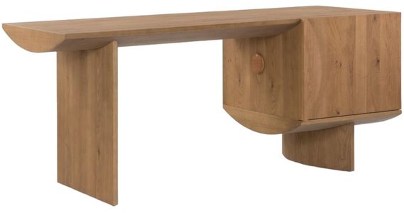 Four Hands Pickford Dusted Oak Veneer Desk shape-driven desk made from thick-cut oak veneer features overscale proportions in a warm grey-brown finish and spacious side cabinetry with a cutout for cord management.Read More