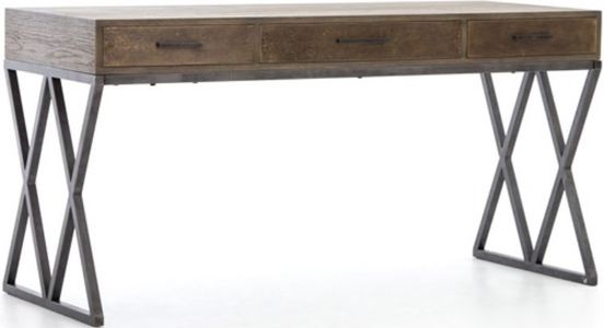 Distinctive lines, sleek scale, and ample storage. Greyed oak desktop contrasts with brass-clad drawer fronts in antiqued brass finish. Incorporate this desk into your office area to give your space a refined touch.Read More