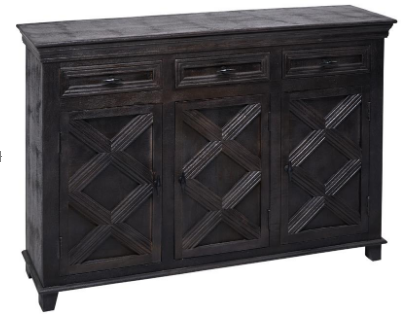 The Alderfer group is constructed, using tongue and groove joint methods, of mango wood in our water resistant lacquer sealed distressed onyx sand finish. Features of this versatile cabinet include routed and applied moulding detail, black powder coated iron pulls, two drawers and an interior shelved storage compartment.Read More