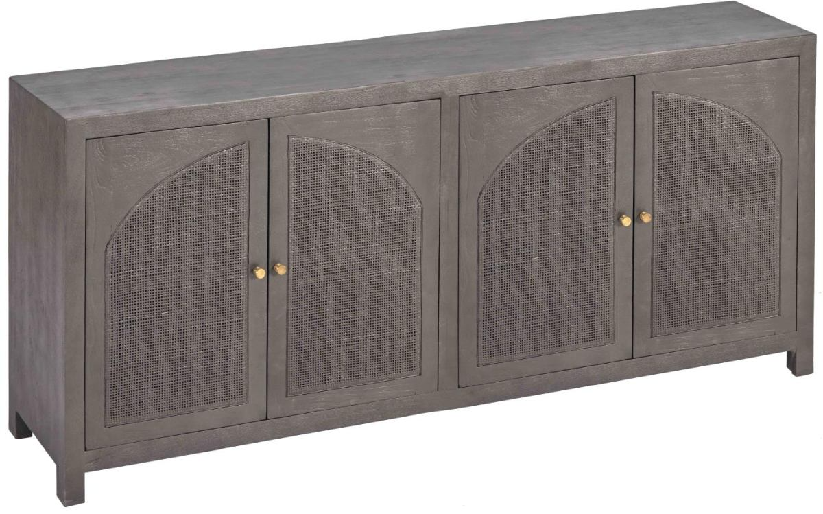 The Callery cabinets are constructed, using tongue and groove joint methods, of mango wood in our water resistant lacquer sealed Sand Blast Grey finish. Features include "mirroring" arched cane door front inserts, shelved interior compartments-and simple antique brass finish knobs.Read More