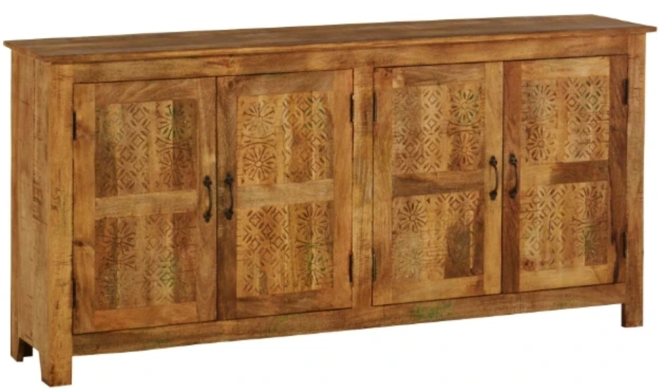 The Jaipur Furniture Guru 4-Door Print Block Sideboard combines vibrant block prints with practical storage. Featuring four doors and a spacious interior, this sideboard adds a touch of artisanal charm while offering ample space for organizing dining essentials or decorative items.Read More