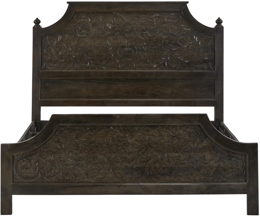 The Michel group is constructed, using tongue and groove joint methods, of mango wood in our water resistant lacquer sealed Olive Grey finish. Features of this "stately" bed include intricate hand carved and routed detail in the shaped and framed headboard and footboard.Read More
