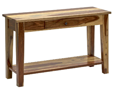 This handsome and versatile console table features one solid wood drawer and bottom shelf.