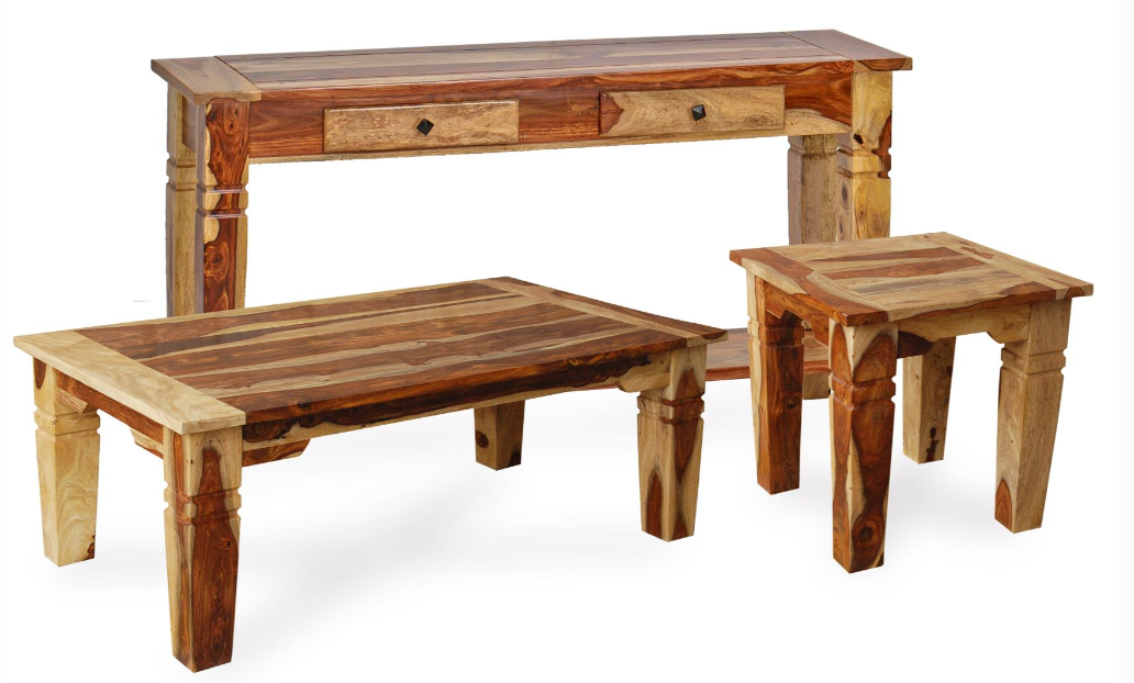 The Tahoe group is constructed of sheesham timber in a water-resistant lacquer sealed natural finish