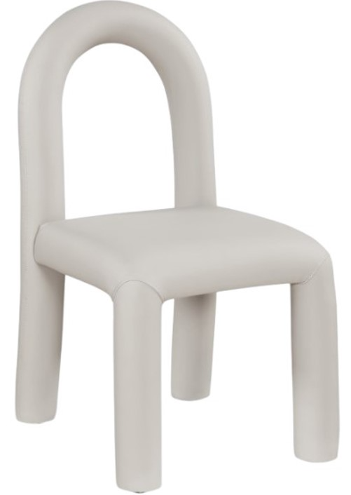 Make a bold statement with the taupe Amari vegan leather upholstered dining chair, where modern artistry meets everyday comfort. Wrapped in soft vegan leather, this chair offers a luxurious feel while its distinctive, rounded open-back design adds an airy, sculptural touch.Read More