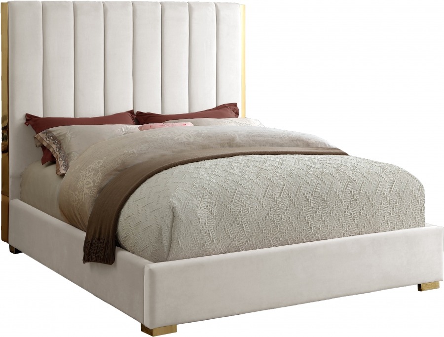 Transform your bedroom into a luxurious place to retired in the evenings with this elegant Becca cream velvet full bed. Featuring a cream velvet base with channel tufting atop a polished gold metal frame, this full-size bed makes a bold statement even when incorporated with existing contemporary bedroom decor.Read More