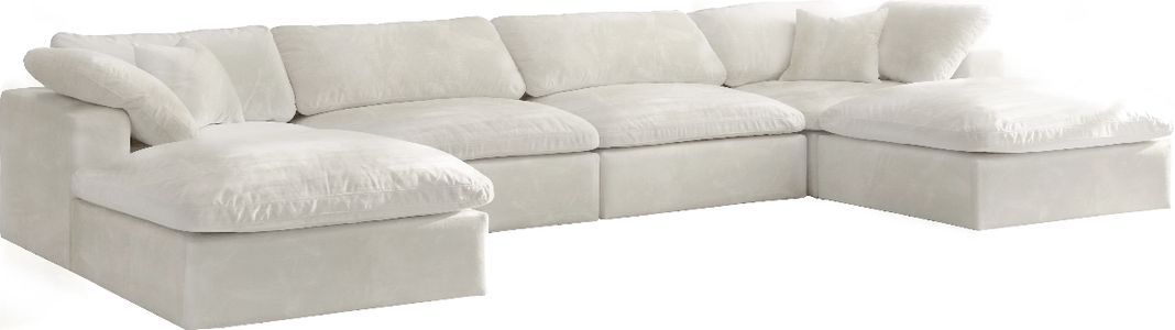 Bring home this Cozy 6-piece sectional for a fresh new look. Embrace casual elegance with this Cozy velvet cloud-like comfort modular fiber-filled seating option. Handsome from all angles, this piece features soft cream velvet upholstery to make it an easy fit in any room.Read More