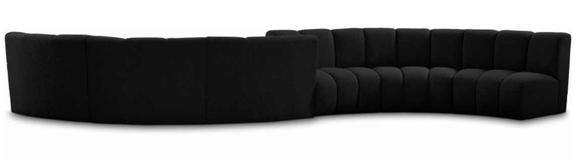 Elegant and eye-catching, the stunning black boucle fabric Infinity 6-piece. Modular Sectional from Meridian Furniture is the perfect addition to any space. The deep channel tufting adds a touch of sophistication to the sectional, making it a statement piece that will elevate any decor.Read More