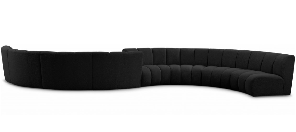 Elegant and eye-catching, the stunning black boucle fabric Infinity eight-piece. Modular Sectional from Meridian Furniture is the perfect addition to any space The deep channel tufting adds a touch of sophistication to the sectional, making it a statement piece that will elevate any decor.Read More