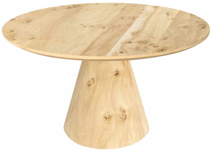 A cerused natural burl finish gives the table a natural look perfect for any down-home living space. Its tapered base provides an elegant and sturdy foundation for its round tabletop, ensuring there is lots of leg space underneath the table.
