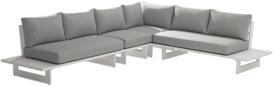 This modular sectional has gray water resistant fabric with a base made from white aluminum, so it's sturdy, tough, and ready to face the elements with impeccable beauty, season in and season out. Shop the contemporary pieces in this collection to create the outdoor entertaining area of your dreams.