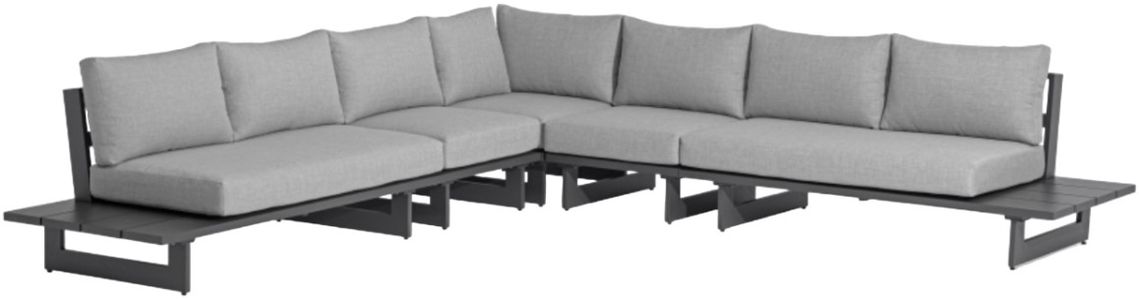 The Meridian Furniture Maldives 5-piece black/gray fabric outdoor sectional features weather-resistant gray upholstery and a sleek black metal frame. Its modular design offers flexible seating arrangements, ideal for patios or decks. Sturdy, low-maintenance materials create a stylish, durable lounging area that withstands outdoor elements.Read More
