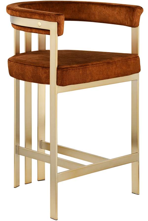 Turn your dining space into a contemporary haven with this Marcello cognac velvet counter stool. Its soft, high-end cognac velvet is soft for you to sit on, while its brushed brass iron frame ensures durability for years to come.Read More