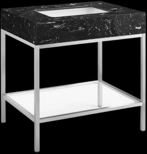 Give your bathroom a fresh new look with this Marmo 30-inch bathroom vanity. This eye-grabbing vanity gives your restroom a spa vibe that's oozing contemporary charm and sophistication. The black marble sink features white veining for an upscale presentation and rests on a brushed chrome-finish stainless steel base for long-lasting beauty and performance.Read More