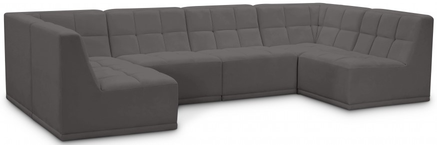 Bolster a contemporary vibe in your living room with this Relax grey modular sectional. Soft grey velvet upholstery offers delicate comfort, making this sectional cozy for anyone who sits in it. Biscuit tufting gives this sectional texture and a modern style, adding extra comfort and elegance to your living space.Read More
