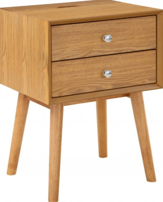 Store the things you use most inside the two generously sized drawers of this Teddy nightstand. This eye-catchingly sophisticated nightstand features a beautiful natural finish with wood grain veneer for a look that wows from all angles.Read More