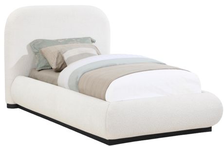 Transform your bedroom into a cozy and inviting retreat with the Vaughn Twin Bed. With its rich cream boucle textured fabric and solid wood base in a black finish, this bed exudes a warm and inviting ambiance that will make you feel right at home.Read More