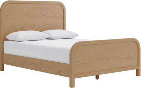 This Drake bed blends classic minimalist lines with a soft modern design, featuring characteristic waterfall edges and rounded corners. Its finish highlights the wood's natural texture, which is achieved through a wire-brushed technique.Read More