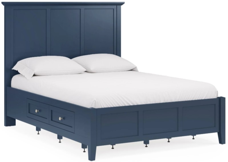 Starting with classic shaker-style drawer fronts, this timeless bedroom collection adds crisp lines and an all-new blueberry finish to create a look that blends seamlessly with modern, farmhouse, coastal and transitional decor. Gently tapered legs, beveled floating tops and smooth black knobs complete the look.Read More