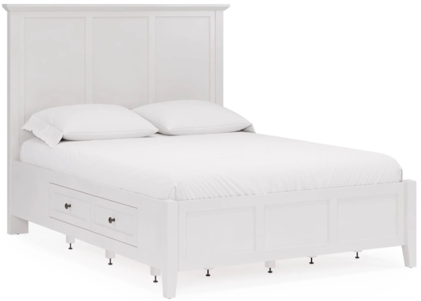 Starting with classic shaker-style drawer fronts, this timeless bedroom collection adds crisp lines and an all-new snowfall white finish to create a look that blends seamlessly with modern, farmhouse, coastal and transitional decor. Gently tapered legs, beveled floating tops and smooth black knobs complete the look.Read More