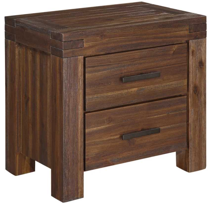 Frame, top, side and front panels are Acacia solid wood; drawer boxes are veneer core hardwood plywood; back panel is MDF, an engineered wood known for exceptional uniformity which ensures the product's structural integrity over time.